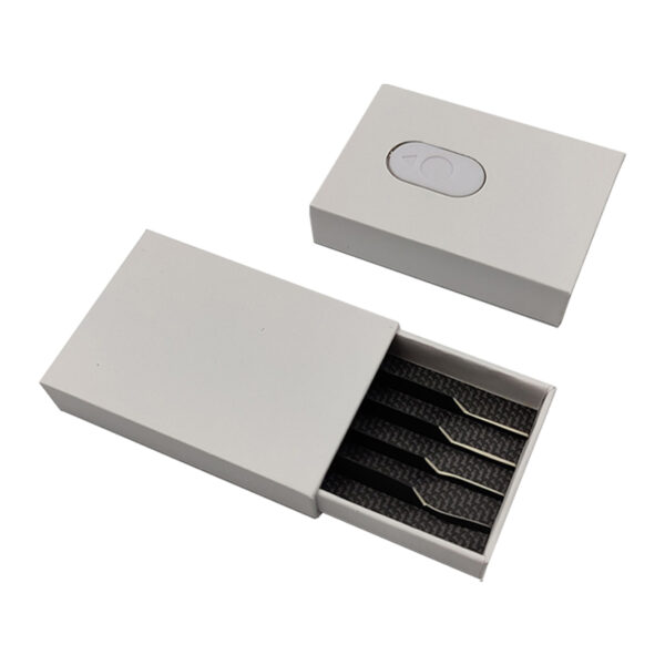 Esta caixa de gaveta de papel rígido foi concebida para blunts e charros pré-enrolados, com um fecho de pressão resistente a crianças para total segurança e conformidade. Com as dimensões de 12×8×2 cm, inclui quatro divisórias para embalagens múltiplas. A impressão frente e verso e os acabamentos personalizados tornam-na ideal para embalagens de canábis de qualidade superior.